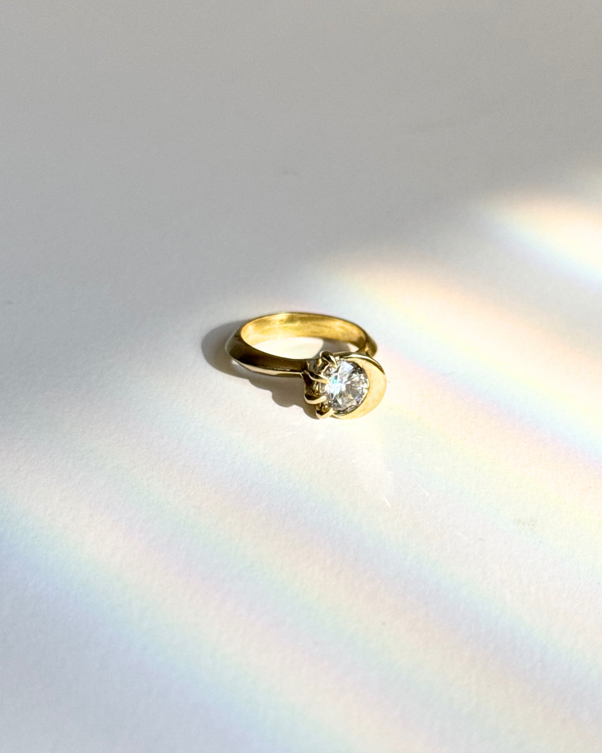 The hammered bezel recalls the moon, while the claws represent the sun: a continuous dialogue between light and shadow, alive in every moment.