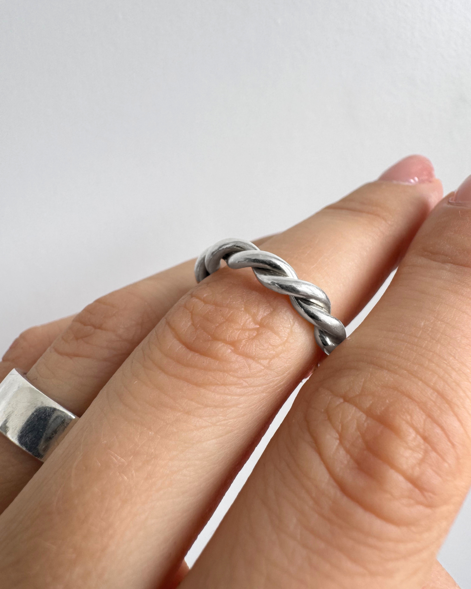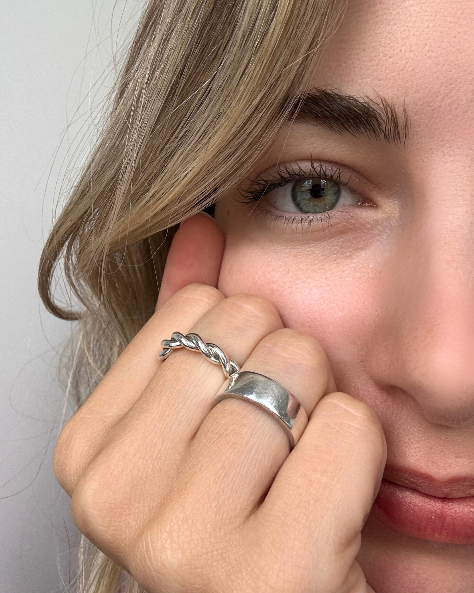 Due fili intrecciati in un abbraccio armonioso e saldo. Un design classico, rivisitato con un carattere deciso.